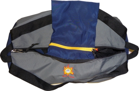 Large Duffle BagThe Large Bag measures 24" long with 17" circular ends. The bag is ideal as an airline check-in bag, gym bag, multi-night bag, or beer bag for boaters.Features: Magnum 1, # 8 YKK zipper with 2 sliders, 1 1/2" shoulder straps positioned for carrying the bag like a backpack, and 2 anchor tabs.. The deluxe model has an internal 6" x 9" zipper pocket.Custom embroidery available.Standard bag $65.00Deluxe bag $75.00(with inside zipper pocket) |